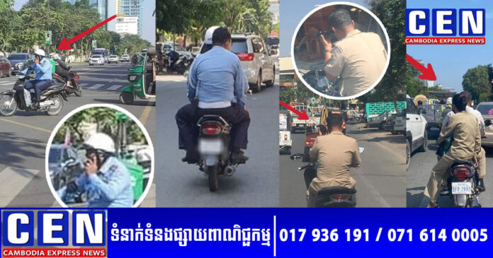 ប៉ូលិសទាំងនោះ ត្រូវបានឃើញមិនគោរពច្បាប់ ខណៈពេលកំពុងធ្វើដំណើរដូចជា៖ បើកបរម៉ូតូកាន់និយាយទូរស័ព្ទ ជិះល្មើសភ្លើងក្រហម អត់ពាក់មួកសុវត្ថិភាព និងជិះអត់ជំពាក់នរណា១រៀល (ផ្លូវមួយមានតែម្នាក់ឯង) ជាដើម។