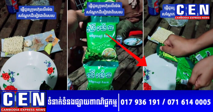 តាមរយៈវីដេអូពិតៗ ស្តែងៗ បានបង្ហាញបុរសៗមួយក្រុម កំពុងព័ទ្ធវង់នាំគ្នាផឹកស៊ី ដោយពុំមានសាច់ក្លែមអ្វី ក្រៅពីមីកញ្ចប់ និងពងទា១គ្រាប់នោះទេ។ តែអ្វីដែលមិននឹកស្មានដល់នោះ គឺនៅពេលពួកគេចាប់ផ្តើមទាញយកកញ្ចប់សណ្តែកខៀវយីហោ លី ម៉េង មួយខ្សែមកហែកក្លែមបង្ហើយចុងក្រោយ ស្រាប់តែកញ្ចប់ទាំងនោះប៉ោងតែកញ្ចប់ ខណៈខាងក្នុងមានតែ…ខ្យល់ ពោលគឺកញ្ចប់ខ្លះមាន១គ្រប់-២គ្រាប់ និងកញ្ចប់ខ្លះទៀតទទេស្អាតតែម្តង។