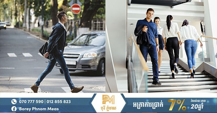 ក្រៅពីគន្លឹះក្នុងការដើរហើយ ការឡើងចុះជណ្ដើរជើងជំនួសជណ្ដើរយន្ត ក៏ជួយឱ្យមានកិច្ចការងារខាងរាងកាយកើនឡើងច្រើនដែរ តែរឿងសំខាន់គឺ ការសាងកម្លាំងជំរុញចិត្តដល់ខ្លួនឯង ឱ្យ