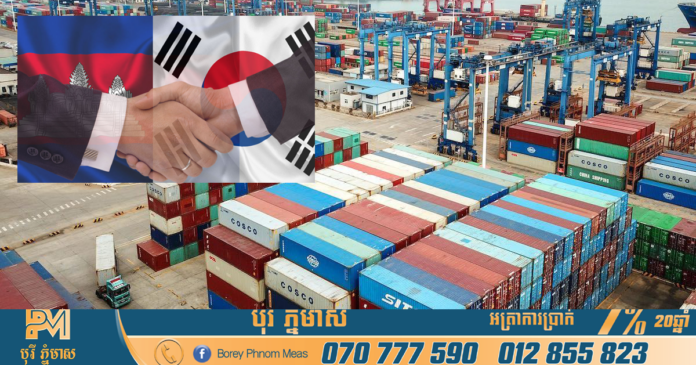 ភ្នំពេញ៖ កិច្ចព្រមព្រៀងពាណិជ្ជកម្មសេរីកម្ពុជា-កូរ៉េ ហៅកាត់ថា (CKFTA) នឹងចូលជាធរមាននៅថ្ងៃទី១ ខែធ្នូ ឆ្នាំ២០២២ខាងមុខនេះ ដែលនឹងបង្កើនទំហំពាណិជ្ជកម្មរវាងប្រទេសទាំងពីរ និងបង្កើតកាលានុវត្តភាពនាំចេញ ថ្មីៗបន្ថែមទៀត ដូចជា ផលិតផលសំលៀកបំពាក់ កាបូប គ្រឿងអេឡិកត្រូនិច និងផលិតផលកសិកម្មជាដើម។