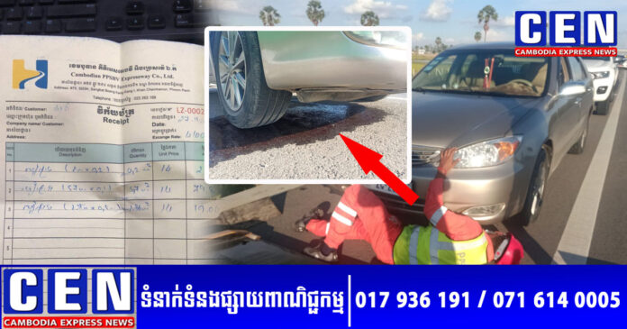នេះបើតាមគណនីហ្វេសប៊ុកឈ្មោះ Saodara Seng ជាម្ចាស់ឡាន បានបង្ហោះឲ្យឃើញក្រដាសវិក័យបត្រថ្លៃផាកពិន័យហៀរប្រេងប្រឡាក់ផ្លូវ អស់ 100$ និងសេវាអូសសរុប 83 $ ភ្ជាប់សារសម្តែងការហួសចិត្តថា៖ «ញាក់សាច់! ថ្មីចែស! គ្រាន់តែប្រេងម៉ាស៊ីនប្រឡាក់ផ្លូវ ក៏ត្រូវទទួលរងការទូទាត់សំណងដែរ ស្គាល់រសជាតិហើយ កំពុងសំបូរលុយផង»។