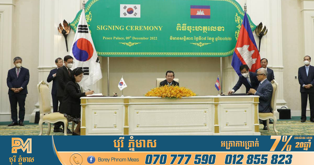 ភ្នំពេញ៖ កម្ពុជា និងសាធារណរដ្ឋកូរ៉េ នៅថ្ងៃទី០៩ ខែធ្នូ ឆ្នាំ២០២២ បានចុះហត្ថលេខាលើកិច្ចព្រមព្រៀង ស្ដីពីការផ្ដល់ឥណទានសម្បទាននៃមូលនិធិសហប្រតិបត្តិការអភិវឌ្ឍន៍សេដ្ឋកិច្ច ដែលមានទំហំទឹកប្រាក់សរុបប្រមាណជាង ១,៨ប៊ីលានដុល្លារ ក្រោមអធិបតីភាពសម្តេចអគ្គមហាសេនាបតីតេជោ ហ៊ុន សែន នាយករដ្ឋមន្រ្តី នៃព្រះរាជាណាចក្រកម្ពុជា នៅវិមានសន្តិភាព។