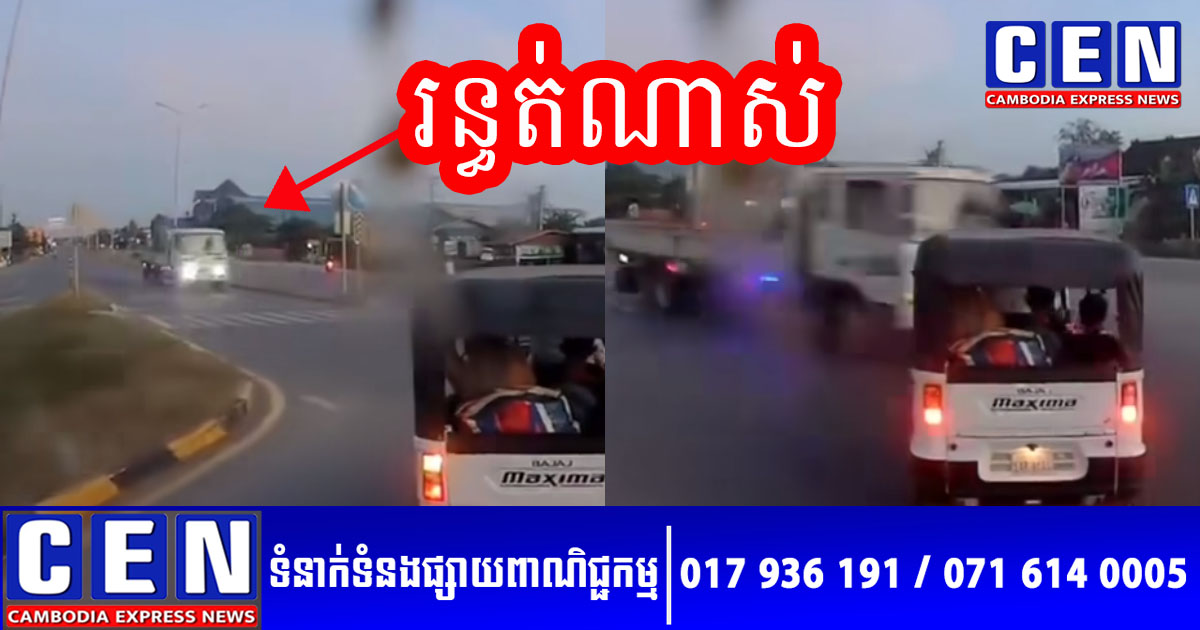 តាមរយៈវីដេអូស្តែងៗ បានបង្ហាញឲ្យឃើញ ខណៈមកដល់ជិតត្រង់ផ្លូវបំបែក គេបានឃើញឡានធំ វ៉ៃភ្លើងហ្វា ប៉ុន្តែ កង់បីបាចាធំ១គ្រឿង ហាក់ពុំឃើញការសុំផ្លូវ និងព្យាយាមបើកឆ្លងផ្លូវទាំងប្រថុយ ដែលជាលទ្ធផល ត្រូវជួបគ្រោះថ្នាក់បែបនេះ។