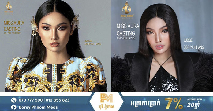 ភ្នំពេញ ៖ លោកស្រី ហង្ស សុរិយ៉ាន់ ត្រូវជ្រើសជាគណៈកម្មការកម្មវិធី Casting ជ្រើសរើសបវរកញ្ញា Miss Aura Cambodia 2023 ដើម្បីសប្បុរសធម៌ ដែលនេះជាកម្មវិធីថ្មីមួយ នឹងមកដល់នៅថ្ងៃ១៦ដល់១៨ នាផ្សារទំនើបជីបម៉ុងផ្លូវ២៧១ អ្នករៀបចំធ្វើឡើងក្នុងភាពមនុស្សធម៌ ហើយប្រាក់ដែលរកបានគឺយកទៅធ្វើសប្បុរសធម៌ក្នុងសង្គម។ អ្វីដែលយើងរីករាយ អ្នកដែលជាគណៈកម្មាការ សុទ្ឋតែជាអ្នកមានស្នាដៃ នៅលើវិស័យសិល្បៈហើយ និងមានវត្តមានជាមួយកម្មវិធី ដើម្បីជ្រើសរើសពន្លកសិល្បៈ ជំនាន់ក្រោយផ្នែកសម្រស់ឲ្យបានល្អ ស័ក្តិសមការចង់បានពីម្ចាស់កម្មវិធី។