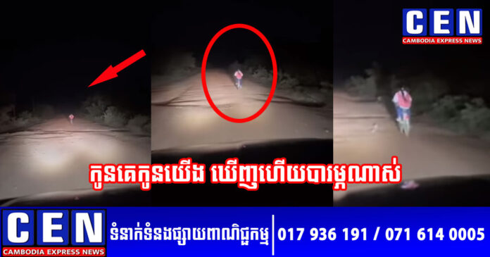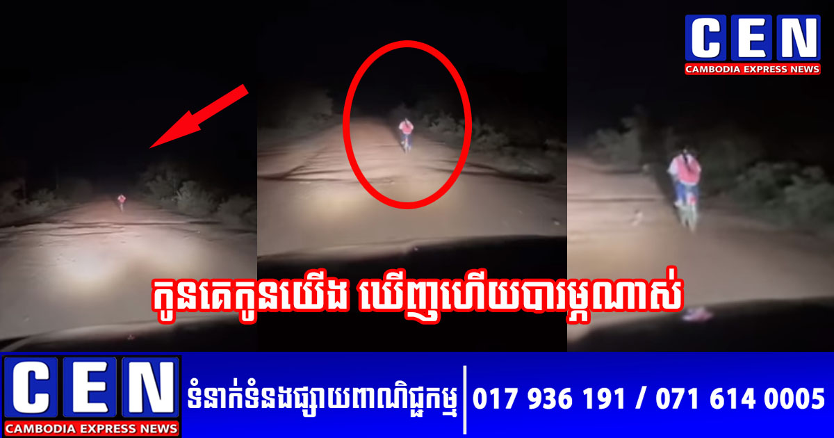 តាមរយៈវីដេអូ បានបង្ហាញក្មេងស្រីរូបនោះ ខំប្រឹងធាក់កង់មិនហ៊ានបង្អង់ជើងទេ នៅពេលឃើញឱកាសភ្លើងឡានបំភ្លឺផ្លូវ មកពីខាងក្រោយ ខណៈផ្លូវខាងមុខងងិតសូនឈឹង មិនឃើញស្រមោលជាយភូមិ និងសងខាងផ្លូវក៏មិនមែនផ្ទះប្រជាពលរដ្ឋណារស់នៅ សូម្បីតែមួយខ្នងនោះទេ។