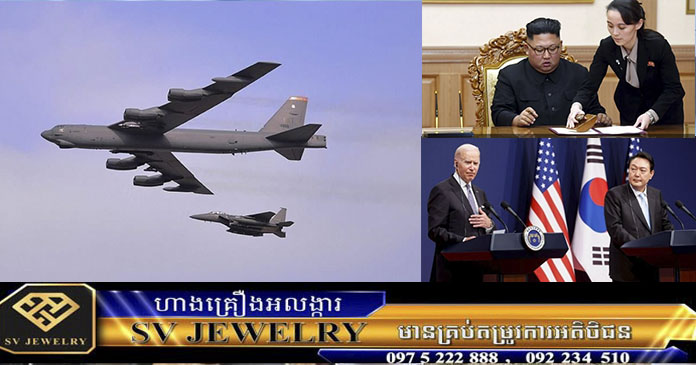 រដ្ឋធានីសេអ៊ូល៖ ស្របពេលកូរ៉េខាងជើង បាញ់មីស៊ីលផ្លោង ឥតឈប់ឈរនោះ សហរដ្ឋអាមេរិក បានបញ្ជូនយន្ដហោះទម្លាក់គ្រាប់បែកយុទ្ធសាស្រ្ដ បេ-៥២ (B-52), យន្ដហោះចម្បាំងបំបាំងកាយដ៏ទំនើប ប្រភេទ F-22 Raptor និង យន្ដហោះចម្បាំងបំបាំងកាយ ប្រភេទ F-35 ចេញសមយុទ្ធ នៅលើដែនអាកាស ជាមួយនឹងកងទ័ពអាកាសរបស់ប្រទេសជាសម្ពន្ធមិត្ត នៅអាស៊ីបូព៌ា (កូរ៉េខាងត្បូង០ ដើម្បីព្រមានដល់ក្រុងព្យុងយ៉ាង។