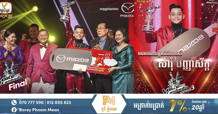 ភ្នំពេញ ៖ ពិតជាធ្វើឱ្យមានការចាប់អារម្មណ៍ និងជំរុញឱកាសដល់តារាចម្រៀង លោក ហ្សូណូ មែន បន្ទាប់ពីការប្រកួតប្រជែងអស់ពេលជាច្រើនសប្តាហ៍ក្នុងការប្រឡងចម្រៀងកុមារលំដាប់ពិភពលោក (The Voice Kids Cambodia ) ហើយចុងក្រោយ ហ្សូណូ បានធ្វើឱ្យកុមារា សារុំ បញ្ញាស័ក្ដិ ទទួលបានពានរង្វាន់ឯក The Voice Kids Cambodia រដូវកាលទី៣ ។