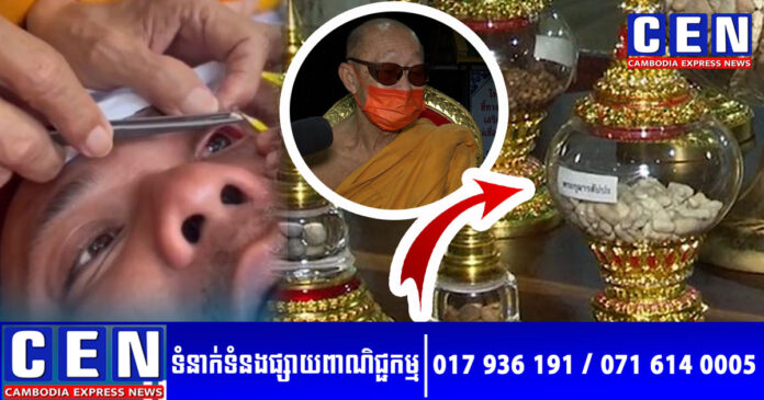 នេះជារឿងថ្មីប្លែកទៀតហើយ ដែលកំពុងផ្ទុះការចាប់អារម្មណ៍យ៉ាងខ្លាំង នៅលើបណ្តាញសង្គមក្នុងប្រទេសថៃ ខណៈបានឃើញវិធីថ្មីមួយរបស់ព្រះសង្ឃចំណាស់មួយអង្គ ដែលបានអះអាងយកព្រះសារីរិកធាតុ ដាក់ក្នុងភ្នែក ជឿថានឹងធ្វើឲ្យចម្រើនមង្គលគ្រួសារ និងមានលាភសំណាង។