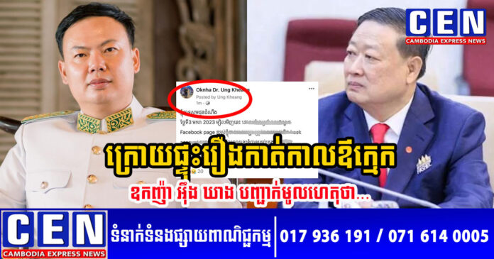 ពិតណាស់ នៅមុននេះបន្តិច (ថ្ងៃទី៤ ខែមករា ឆ្នាំ២០២២) លោកឧកញ៉ា អ៊ឹង ឃាង បានបង្ហោះសារបញ្ជាក់យ៉ាងដូច្នេះថា៖ «ខ្ញុំបាទសូមជូនដំណឹង ថ្ងៃទី3 មករា 2023 ម្សិលមិញនេះ វេលាម៉ោងប្រហែល6ល្ងាច Facebook page របស់ខ្ញុំបាទមានបញ្ហា ត្រូវបានជនអនាមិក hack account យកទៅប្រើ ប៉ុន្តែពេលនេះខ្ញុំបានគ្រប់គ្រងវិញហើយ សូមមហាជនកុំមានការ ភ័ន្តច្រឡំ និងសូមកុំចែកចាយបន្ត»៕ រក្សាសិទ្ធិដោយ៖ លឹម ហុង
