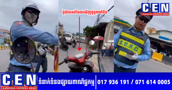 មហាជន នៅក្នុងបណ្តាញសង្គម ពិតជាមានការភ្ញាក់ផ្អើល និងហួសចិត្តខ្លាំងតែម្តង នៅពេលបានឃើញប៉ូលិសមួយក្រុម ត្រូវបានបុរសម្នាក់ព្រលះឲ្យយ៉ាងចាស់ដៃ បន្ទាប់ស្ទាក់ចាប់ម៉ូតូរបស់គាត់ ដោយសារឃើញម៉ូតូពណ៌ក្រហម ខណៈម៉ូតូអត់កញ្ចក់ម្ខាងមិនចាប់ បែរជាចាប់សង្ស័យរឿងម៉ូតូប្តូរពណ៌ទៅវិញ។