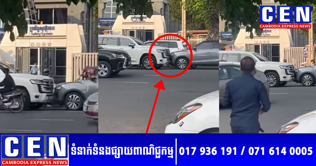 បើតាមរយៈវីដេអូ គឺដំបូងឡើយ គេបានឃើញរថយន្តឡង់គ្រីស័រ ពណ៌ស១គ្រឿង និងរថយន្តទំនើប១គ្រឿងទៀតម៉ាក ssangyong tivoli កំពុងជល់ក្បាលគ្នា។ ប៉ុន្តែ បន្ទាប់មក ក៏ស្រាប់តែរថយន្តឡង់គ្រីស័រ បើករុញរថយន្តទំនើបតូចនោះ ឲ្យថយក្រោយជាច្រើនម៉ែត្រតែម្តង។