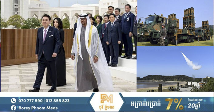 កូរ៉េខាងត្បូង ៖ ស្របពេលមានស្ថានភាពនយោបាយកាន់តែតានតឹងខ្លាំងឡើងជាមួយនឹងអ៊ីរ៉ង់ ដែលជាប្រទេសជិតខាងនោះមក ប្រទេសអារ៉ាប់អេមីរ៉ាត (United Arab Emirates) កំពុងតែបង្កើននូវការទិញគ្រឿងសឹកចម្បាំងទំនើបៗ និងប្រព័ន្ធការពារដែនអាកាសមកពីបណ្ដាប្រទេសបស្ចិមលោក និងសម្ព័ន្ធមិត្ត សម្រាប់ការពារទឹកដីរបស់ខ្លួន ស្របពេលមេដឹកនាំកូរ៉េខាងត្បូង ក៏បានជំហានទៅជាន់ទឹកដីនៃប្រទេសសម្បូរប្រេងមួយនេះ ដើម្បីស្វែងរកការលក់គ្រឿងយុទ្ធភណ្ឌរបស់ក្រុងសេអ៊ូលផងដែរ។