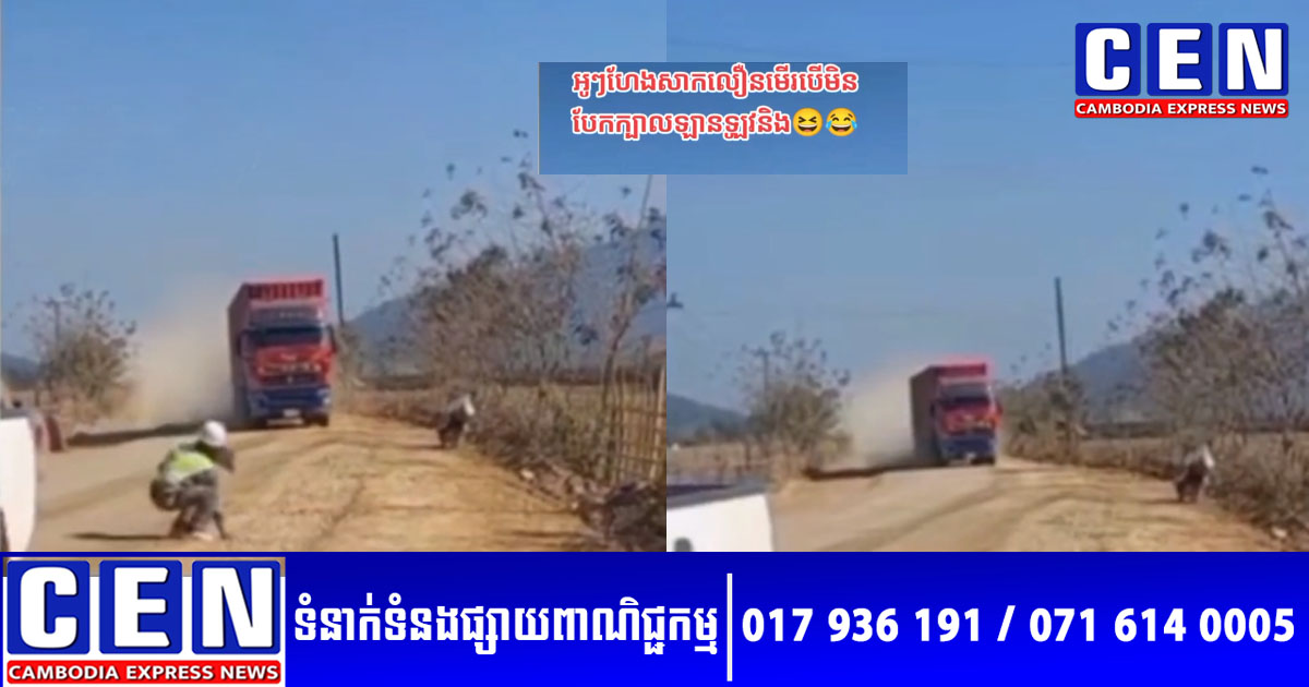 ដោយឡែក វីដេអូ TikTok មួយ ដែលត្រូវបានចែករំលែកថ្មីៗនេះ បានធ្វើឲ្យអ្នកលេងបណ្តាញសង្គម ពិតជាទប់សំណើចពុំបាន ក្រោយពីបានឃើញបុរសអ្នកធ្វើផ្លូវម្នាក់ រកទាញដុំថ្មគប់ឡានកុងតឺន័រ ដែលបើកលឿនមិនស្គាល់កន្លែងគេធ្វើការងារ។