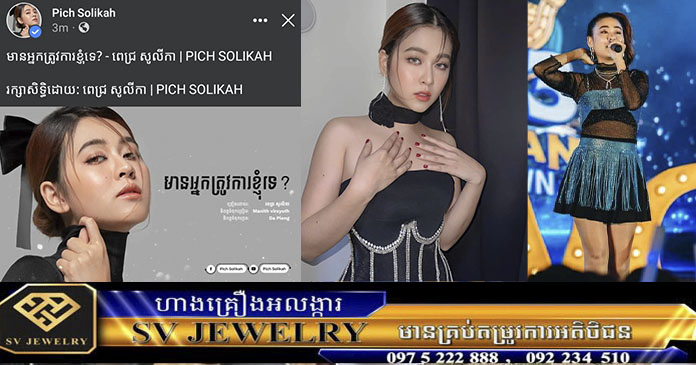 ភ្នំពេញ ៖ តារាចម្រៀងនាង ពេជ្រ សូលីកា បានប្រកាសចាត់វិធានការទៅលើជនអនាមិក ដែលបានលួចចែកចាយបទចម្រៀងមួយបទ របស់នាងដោយគ្មានការអនុញ្ញាត នៅលើបណ្តាញសង្គមហ្វេសប៊ុក។