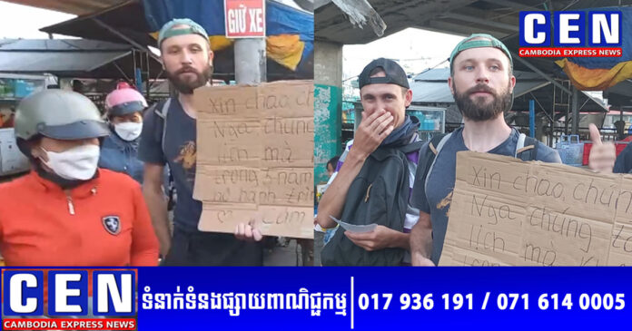សូមបញ្ជាក់ថា នៅទីក្រុងភ្នំពេញ ក៏សង្កេតឃើញជារឿយៗ មានករណីជនបរទេសប្រុសស្រីមួយចំនួន លេចមុខនៅតាមស្តុប លើកក្រដាសកាតុង សរសេរសុំលុយដូចគ្នានេះផងដែរ៕ រក្សាសិទ្ធិដោយ៖ លឹម ហុង