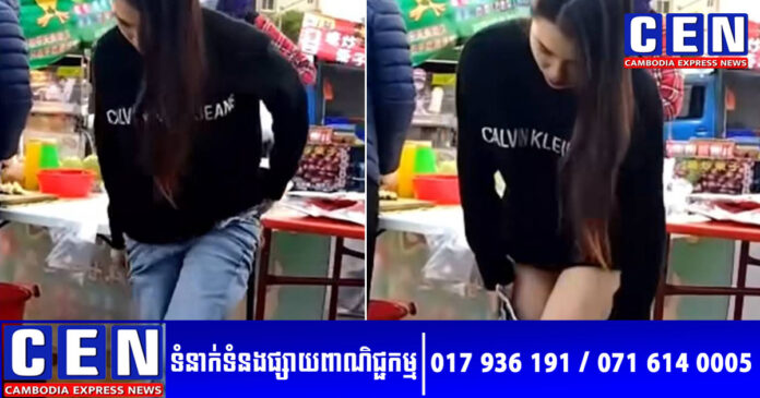 តាមរយៈឃ្លីបដែលបង្ហោះកាលពីថ្ងៃទី២៩ ខែមករា បានបង្ហាញស្រីស្អាតម្នាក់នោះ ដែលដំបូងឡើយ ស្ថិតក្នុងសម្លៀកបំពាក់អាវរងាដៃវែង និងខោខូវប៊យ មុនពេលដោះនៅចំពោះមុខមនុស្ស នៅតូបលក់ផ្លែឈើក្នុងផ្សាររាត្រី រហូតបញ្ចេញរាងកាយទាំងមូលសល់តែឈុតប៊ីគីនីពណ៌ខៀវ ហើយប្តូរមកពាក់ស្បែកជើងកែងខ្ពស់។