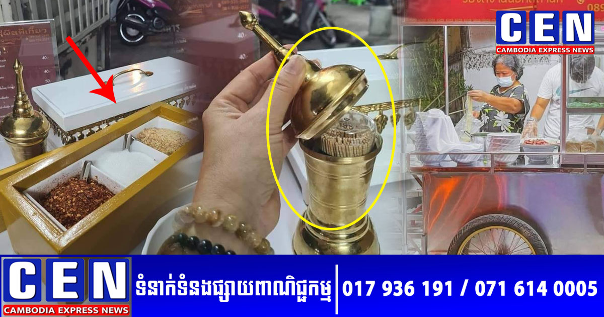 ជាធម្មតា នៅពេលដែលយើងចូលហាងគុយទាវ ឬហាងអាហារដ្ឋានផ្សេងៗ នោះប្រដាប់ដាក់គ្រឿង គឺតែងត្រូវបានឃើញជាកំប៉ុង ឬ ចានតូចៗប៉ុណ្ណោះ ។ តែអ្វីដែលភ្ញាក់ផ្អើលខ្លាំងនោះ គឺហាងអាហារមួយនៅក្នុងប្រទេសថៃ បែរជាគិតឃើញនូវរឿងដ៏ព្រឺព្រួចមួយនេះ ដោយច្នៃ «មឈូស និងកោដ» តូចៗ សម្រាប់ដាក់គ្រឿង ស្លាបព្រា ឈើចាក់ឆ្មេញ និងចង្កឹះជាដើម។