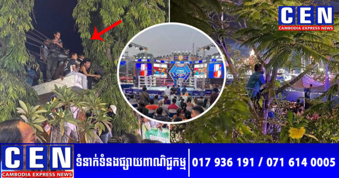 ដោយឡែក ក្រឡេកមកមើលរូបភាពទាំងនេះវិញ នៅយប់នៃការប្រកួតដ៏កក្រើកនោះ គឺពិតជាគួរឲ្យខ្លោចចិត្តជាខ្លាំង ខណៈឃើញបងប្អូនអ្នកមកទស្សនា បាននាំគ្នាឡើងលើដើមឈើបែបនេះ ។ លើសពីនេះ អ្វីដែលគួរឲ្យហួសចិត្តកាន់តែខ្លាំងទៀតនោះ គឺក្នុងនោះ មានអ្នកទស្សនាមួយក្រុមធំ ដល់ថ្នាក់នាំគ្នាឡើងឈរ «ទ្រោប» ពីលើខ្សែភ្លើងផ្ទាល់ៗតែម្តង ដោយមិនខ្លាចពីគ្រោះថ្នាក់ដល់អាយុជីវិតសោះឡើយ។