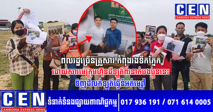 ជាមួយគ្នានេះ បងប្អូនប្រជាពលរដ្ឋរងគ្រោះ ដែលក្នុងនោះមានទាំងស្រ្តីក្រីក្រដែលខំប្រឹងត្រដររកស៊ីរបរអេតចាយ សន្សំកាក់សេន ទម្រាំបានលុយពាន់ដុល្លារ យកមកទិញដីឡូត៍ រំពឹងមានដីបានធ្វើផ្ទះនឹងគេ តែបែរមកជួបក្រុមហ៊ុនបោកប្រាស់បែបនេះ បានស្រែកទ្រោហ៊ោយំស្ទើរដួលសន្លប់នឹងកន្លែងដីឡូត៍ខ្យល់ លើកដៃសំពះ អង្វរដល់សម្តេចពុក សម្តេចម៉ែ ប៊ុន រ៉ានី ហ៊ុន សែន សូមលោកទាំងពីរជួយអន្តរាគមន៍ រកយុត្តិធម៌ឲ្យកូនចៅរងគ្រោះផង។