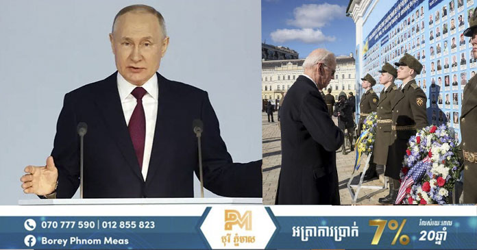 រដ្ឋធានីកៀវ៖ នៅក្នុងដំណើរទស្សនកិច្ចរបស់ប្រធានាធិបតីសហរដ្ឋអាមេរិក ទៅកាន់រដ្ឋធានីកៀវ នោះ កំពុងតែបញ្ឆេះកំហឹង ដល់មេដឹកនាំវិមានក្រឹមឡាំង លោក វ៉្លាឌីមៀ ពូទីន ឲ្យកាន់តែផ្ទុះខ្លាំងឡើង ហើយប្ដេជ្ញាធ្វើសង្គ្រាម នៅក្នុងប្រទេសអ៊ុយក្រែន បន្ដទៀត។