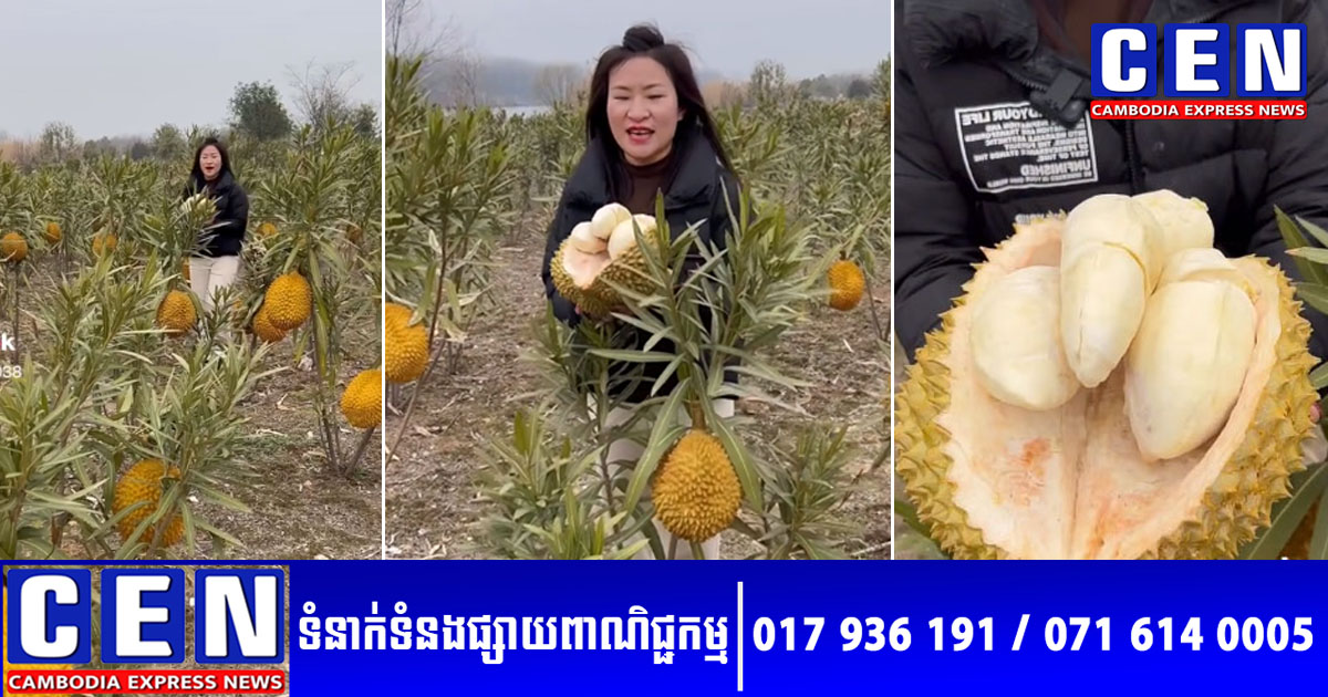 វីដេអូមួយបានកំពុងធ្វើឲ្យអ្នកនិយមលេងបណ្តាញសង្គម ជាពិសេសប្រជាជនថៃ ផ្ទុះការភ្ញាក់ផ្អើលយ៉ាងខ្លាំង នៅពេលបានឃើញទិដ្ឋភាពស្រ្តីជនជាតិចិនម្នាក់ បង្ហាញចំការទុរេនដ៏ចម្លែក ដែលពួកគេពុំធ្លាប់បានឃើញពីមុន។