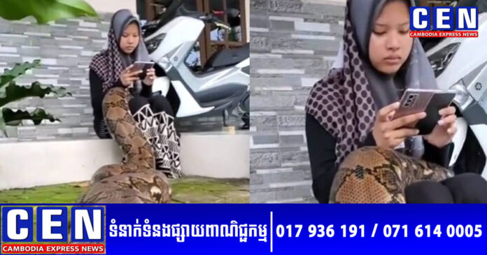 វីដេអូដ៏រន្ធត់មួយ ដែលត្រូវបានអ្នកប្រើប្រាស់បណ្ដាញសង្គមចែករំលែក បង្ហាញពស់ថ្លាន់ដ៏ធំគួរឱ្យខ្លាចមួយក្បាល វារឡើងលើភ្លៅក្មេងស្រីជំទង់ម្នាក់ ខណៈនាងកំពុងលេងទូរស័ព្ទនៅមុខផ្ទះ ដោយបង្ហាញថា នាងស៊ាំនឹង “សត្វចិញ្ចឹម” នេះខ្លាំងណាស់ បានធ្វើឲ្យអ្នកនិយមលេងអ៊ីនធឺណេត ភ្ញាក់ផ្អើលជាខ្លាំង។