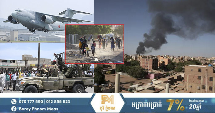 រដ្ឋធានីខាទូម (Khartoum)៖ រដ្ឋាភិបាលក្រុងតូក្យូ បានរៀបចំជម្លៀសប្រជាជនជប៉ុន ចេញពីប្រទេសស៊ូដង់ ខណៈប្រជាជនរាប់ម៉ឺននាក់ រស់នៅក្នុងប្រទេសអាហ្វ្រិក ភាគឦសានមួយនេះ កំពុងតែរត់ភៀសខ្លួន ក្រោយការវាយប្រយុទ្ធគ្នា បានឈានចូលដល់ថ្ងៃទី៥។