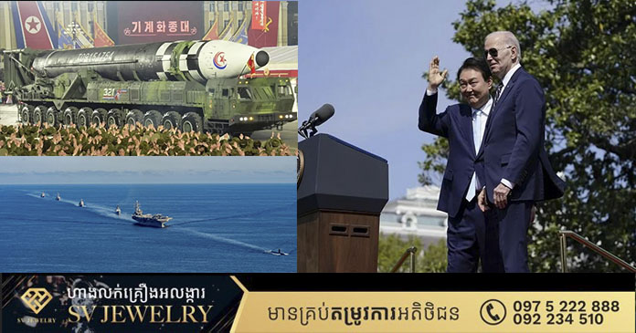 រដ្ឋធានីវ៉ាស៊ីនតោន៖ ប្រធានាធិបតីសហរដ្ឋអាមេរិក និង កូរ៉េខាងត្បូង កាលពីថ្ងៃពុធ បានបង្ហាញ អំពីផែនការថ្មី ដើម្បីប្រឈមមុខនឹងការគំរាមកំហែង អំពីអាវុធមហាប្រល័យលោករបស់កូរ៉ខាងជើង ស្របពេលក្រុងវ៉ាស៊ីនតោន ចេញការព្រមាន អំពីការបញ្ចប់នូវរបបគ្រប់គ្រង នៅក្នុងតីក្រុងព្យុងយ៉ាង ប្រសិនបើមានការវាយប្រហារ មកលើសម្ពន្ធមិត្តរបស់ខ្លួន។