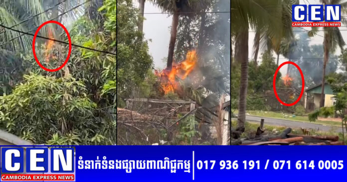 បើតាមប្រជាពលរដ្ឋ ដែលថតវីដេអូពីករណីនេះ បានចែករំលែកឲ្យដឹងថា «សូមបងប្អូនប្រុងប្រយ័ត្ន មុននេះបន្តិច មានខ្យល់ផ្គរ ហើយក៏មានរន្ទះបាញ់ឆេះដើមដូងចំនួន៣ដើម ស្ថិតនៅភូមិគោកធ្លក ឃុំគោកធ្លកលើ ស្រុកជីក្រែង ខេត្តសៀមរាប»។