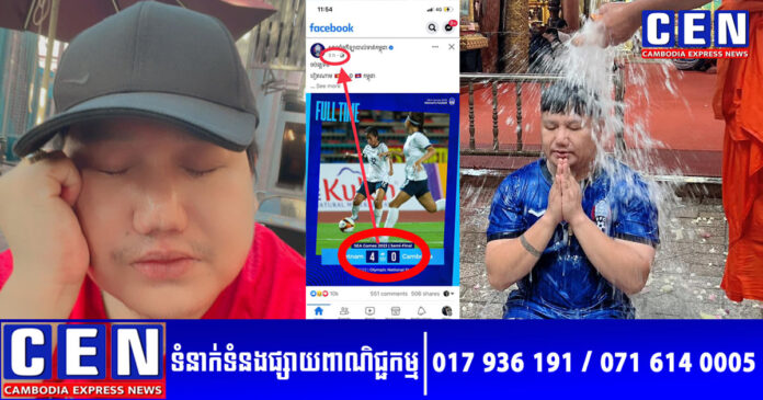 ទោះជាយ៉ាងណា ទន្ទឹមនឹង ម៉ៃ សុគន្ធ ស្រោចទឹក ហើយពោលពាក្យថា «សូមជម្រើសជាតិកម្ពុជាទាំងអស់ ទទួលជោគជ័យ មេដាយមាសច្រើនៗ» ក៏ស្រាប់តែ ក្រុមជម្រើសជាតិបាល់ទាត់ផ្នែកនារីកម្ពុជា ចាញ់វៀតណាម ដោយគេបានបញ្ជាក់ថា «១ម៉ោងមុនស្រោចទឹក ១ម៉ោងក្រោយ ៤-០»។