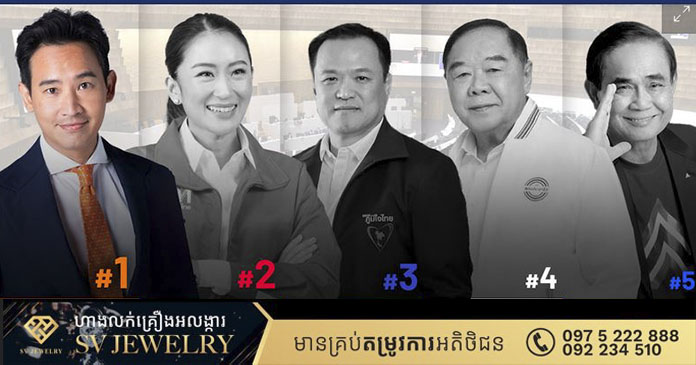គួរបញ្ជាក់ថា គណបក្សចលនាឆ្ពោះទៅមុខ (MFP) និងគណបក្សភឿថៃ ត្រូវបានគេរំពឹងថា នឹងឈ្នះអាសនៈចំនួន ២៩២អាសនៈ ក្នុងចំណោម ៥០០អាសនៈនៅក្នុងសភាតំណាងរាស្រ្ត ខណ:គណបក្សចំនួន២ទៀត ដែលចូលបក្សសម្ព័ន្ធយោធាដ៏សំខាន់នោះទទួលបានត្រឹមតែ ៧៦ប៉ុណ្ណោះ។