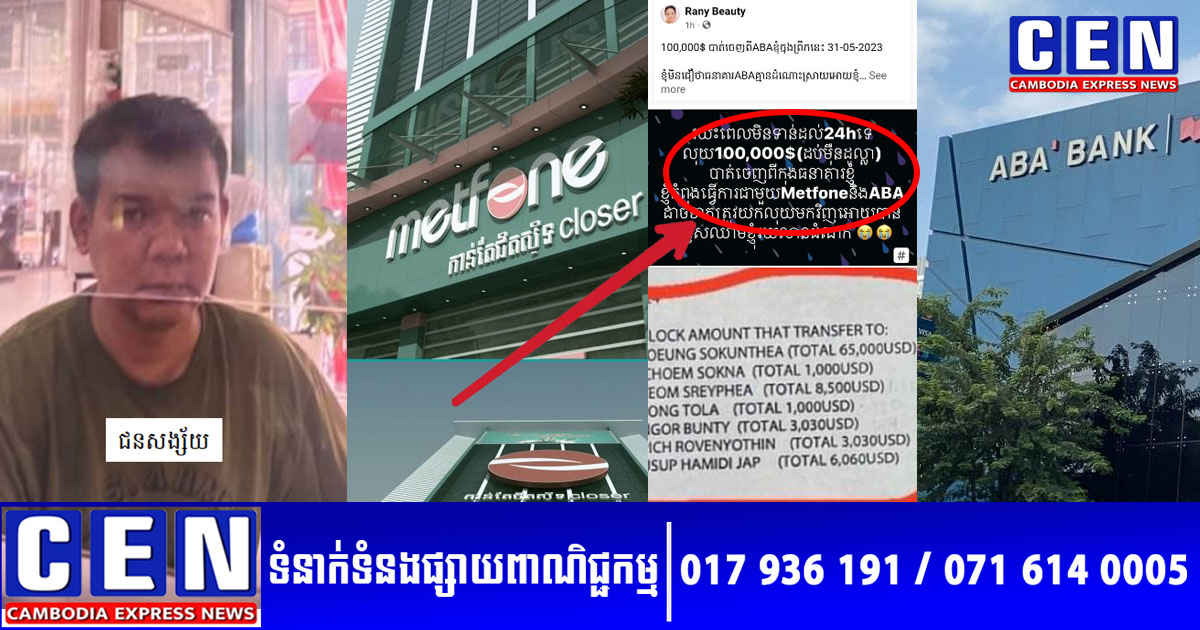 នេះបើតាមហ្វេសប៊ុកឈ្មោះ Chhuy Bunleng ដែលត្រូវជាប្តី បានរៀបរាប់ឲ្យបងប្អូនបានដឹងទាំងអារម្មណ៍តក់ស្លុតថា៖ «រូបចោរខាងក្រោមបន្លំជាខ្ញុំ ហើយបើក Sim Metfoneបាន ខ្ញុំពិតពិបាកចិត្តណាស់ លេខទូរសព្ទMetfoneរបស់ខ្ញុំនេះ ប្រពន្ធខ្ញុំជាអ្នកប្រើហើយក៏ប្រើសម្រាប់កុង ABA គាត់ដែរ ផ្តើមចេញពី Metfone ហេតុអ្វីបានជាបើកស៊ីម Metfone បាន ដែលមិនមែនជាម្ចាស់ទៅបើក Sim_Metfone បាន? ហើយបន្ទាប់មក មិនដឹងហេតុអ្វីបានអ្នកផ្សេង អាច Log in ABA Appបាន ហើយបានវេរលុយចេញអស់ចំនួន១០ម៉ឺន$ ពី Account ABA សូមបញ្ជាក់មិនដល់៣ម៉ោង អស់លុយ$100,000 (10ម៉ឺន$) ទឹកភ្នែកប្រពន្ធសម្លាញ់ហូរស្រក់ ពិតជាគួរអោយអាណិតណាស់ ញើសឈាមដែលខំរកទាំងថ្ងៃទាំងយប់ ទាំងឈឺ ទាំងជា និងបូកលុយជំពាក់គេ ដើម្បីបង្វិលរកស៊ី ពិតអាណិតប្រពន្ធ»។