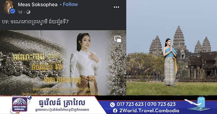 ភ្នំពេញ៖ ក្រសួងវប្បធម៌ និងវិចិត្រសិល្បៈ សូមជម្រាបជូនសាធារណជនទាំងអស់ឲ្យបានជ្រាបថា នាពេលថ្មីៗនេះ ក្រសួងពិនិត្យឃើញមានការបង្ហោះផ្សព្វផ្សាយបទចម្រៀងមួយបទក្រោមចំណងជើងថា មរណភាពព្រះស្វាមី ជ័យវរ្មន័ទី៧ ច្រៀងដោយអ្នកនាង មាស សុខសោភា ក្នុងគណនីហ្វេសប៊ុកឈ្មោះ Meas Soksophea ដែលបានបរិយាយដោយគ្មានភស្តុតាងច្បាស់លាស់ពីការសោយទិវង្គតរបស់ព្រះបាទជ័យវរ្ម័នទី៧ ដែលជាព្រះមហាវីរក្សត្រដ៏មហិមានៅសម័យអង្គរ និងបានបង្កឲ្យមានប្រតិកម្មយ៉ាងខ្លាំងពីសាធារណមតិ។
