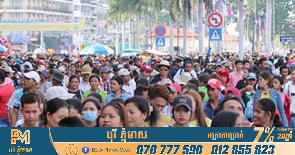 ភ្នំពេញ៖ ជំរឿនប្រជាជនកម្ពុជា ចុងក្រោយបង្អស់នៅឆ្នាំ២០១៩ បានបង្ហាញថា ប្រជាជនសរុបមានចំនួន ១៥.៥៥ លាននាក់។ បើធៀបនឹងលទ្ធផលជំរឿននៅឆ្នាំ២០០៨ ដែលមានប្រជាជន ១៣.៣៩ លាននាក់ គឺឃើញថា កើនឡើង ២.១៥ លាននាក់ ឬ ១៦% ក្នុងរយៈពេល ១១ឆ្នាំ។ ជំរឿនឆ្នាំ២០១៩ បានឱ្យដឹងដែរថាប្រុសមានចំនួន ៧.៥៧ លាននាក់ ស្មើនឹង ៤៨.៧% ខណៈស្រីមាន ៧.៩៨លាននាក់ ត្រូវនឹង ៥១.៣%។