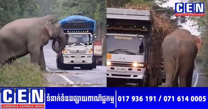 វីដេអូឃ្លីបបង្ហាញសកម្មភាពសត្វដំរីដ៏ធំមួយក្បាល នៅក្នុងប្រទេសថៃ បានចេញមកដងផ្លូវ «កាក់» យានយន្ត ជាពិសេសឡានដឹកអំពៅ ដើម្បី «ប្លន់» សម្រាប់ជាអាហារ បានធ្វើឲ្យអ្នកនិយមលេងអ៊ីនធើរណែត ភ្ញាក់ផ្អើលយ៉ាងខ្លាំង ព្រោះម្នាក់ៗមិននឹកស្មានថា វាអាចចេះរកវិធីរស់បានស៊ីឆ្ងាញ់បែបនេះ។