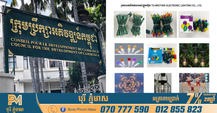 ៤- ក្រុមហ៊ុន “TG-BROTHER ELECTRONIC LIGHTING CO., LTD.” គម្រោងបង្កើតរោងចក្រផលិតអំពូលភ្លើង និងអំពូលភ្លើងលំអ ផលិតផលប្លាស្ទិក ដើមគ្រីស្មាស់ និងសម្ភារៈលំអដើមគ្រីស្មាស់ ដែលមានទីតាំងវិនិយោគស្ថិតនៅក្នុងតំបន់សេដ្ឋកិច្ចពិសេស ស្វាយរៀង ហ្គីហ្គា រីសស៍, ខេត្តស្វាយរៀង, ក្នុងទុនវិនិយោគប្រមាណ ៥លានដុល្លារអាម៉េរិក និងអាចបង្កើតការងារបានចំនួន ៧៥៤ កន្លែង។