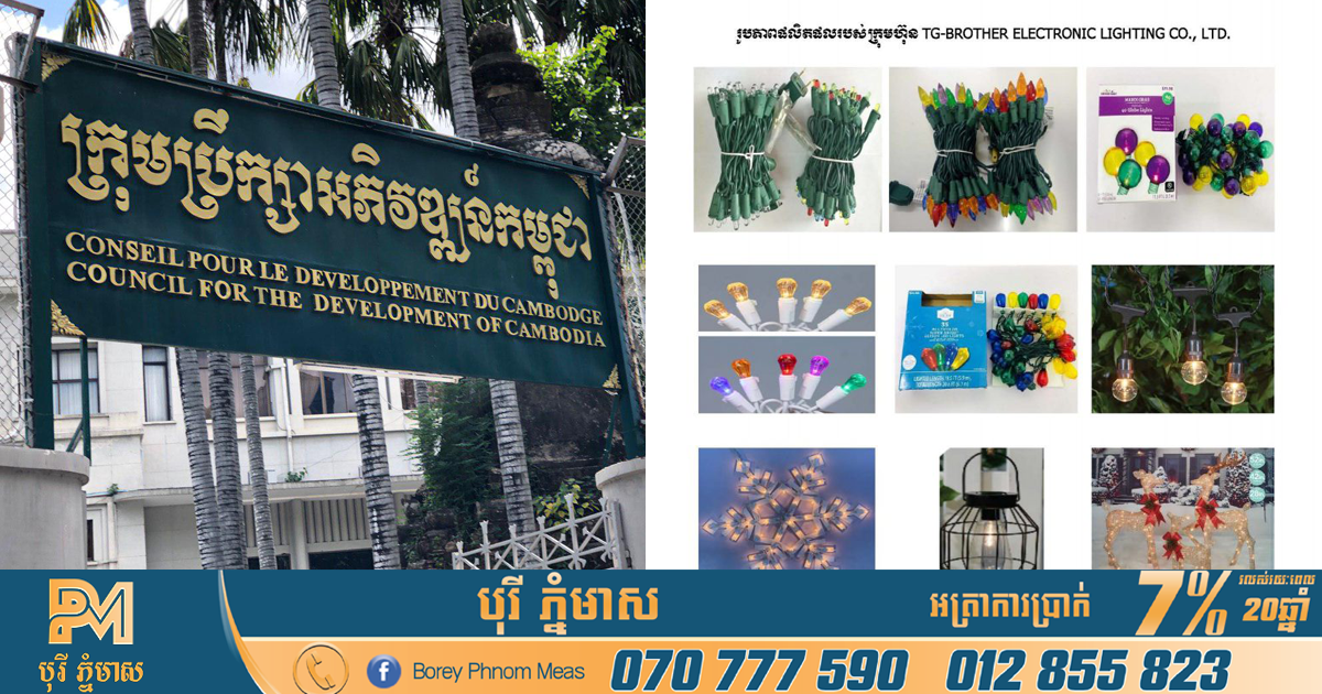 ភ្នំពេញ៖ នៅក្នុងខែមិថុនា ឆ្នាំ២០២៣នេះហ ក្រុមប្រឹក្សាអភិវឌ្ឍន៍កម្ពុជា CDC បានសម្រេចចុះបញ្ជីគម្រោងវិនិយោគ ជូនក្រុមហ៊ុន ៦ ដែលមានទឹកប្រាក់សរុបចំនួនជាង ១៦៣លានដុល្លារ បង្កើតរោងចក្រនៅកម្ពុជា។ ក្រុមហ៊ុនទាំង ៦នោះរួមមាន៖