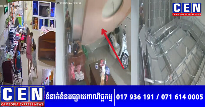 នៅលើបណ្តាញសង្គម កាលពីល្ងាចថ្ងៃទី៦ ខែកក្កដា ឆ្នាំ២០២៣ ម្សិលមិញនេះ បានចែករំលែកវីដេអូនៃហេតុការណ៍បាក់ពិដាន នៅផ្ទះល្វែងមួយដ៏រន្ធត់ ខណៈស្រ្តីជាម្តាយ និងកូនចំនួន៤នាក់ (ក្នុងនោះកូនប្រុសស្រីជាបង២នាក់ និងកូនតូច២នាក់ ម្នាក់ពរនៅដៃ និងម្នាក់ទៀតអង្គុយក្នុងរទេះ) កំពុងស្ថិតនៅខាងក្រោម។ តែសំណាងហើយ ដែលកូនតូចនៅក្នុងរទេះ ត្រូវបានស្រ្តីជាម្តាយវិលត្រឡប់ស្ទុះមកអូសចេញទាន់ពេលវេលា បន្ទាប់រត់ចោលកូនប្រហែលស្លន់ខ្លាំងពេក។