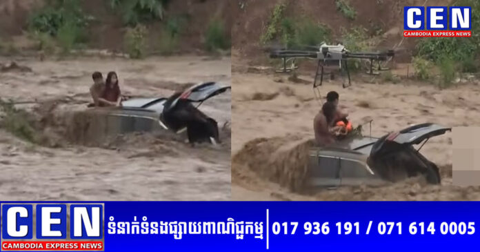ក្រុមសង្គ្រោះមានការលំបាកក្នុងការទៅដល់ជនរងគ្រោះទាំងពីរនាក់ ខណៈស្ថានភាពកំពុងមានការព្រួយបារម្ភខ្លាំង ព្រោះរថយន្តហៀបនឹងលិចទៅហើយ។ មន្ត្រីបានសម្រេចប្រើដ្រូន ដើម្បីបញ្ជូនអាវពោង និងខ្សែសុវត្ថិភាពសម្រាប់អ្នកទាំងពីរទាញឡើងលើច្រាំង។ ទោះយ៉ាងណាក៏ដោយ មានតែ Drone មួយប៉ុណ្ណោះដែលអាចដឹកជញ្ជូនបានក្នុងពេលតែមួយ។ ខណៈការឧបករណ៍សង្គ្រោះបានមកដល់ ដំបូងគឺយុវជននោះប្រញាប់បំពាក់អាវពោងឲ្យគូដណ្តឹងភ្លាមៗ ដើម្បីឲ្យក្រុមសង្ក្រោះទាញនាងឡើងគោកទៅមុន ខណៈរូបគេនៅលើរថយន្តម្នាក់ឯង រង់ចាំការជួយសង្គ្រោះបន្ទាប់។ ពិតជាសំណាងណាស់ បុរសនោះក៏ត្រូវបានផ្តល់អាវពោងបន្ទាប់គូដណ្តឹង ហើយត្រូវបានគេជួយសង្គ្រោះឱ្យរួចផុតពីគ្រោះថ្នាក់ផងដែរ។