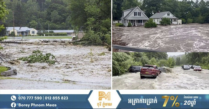 អាមេរិក ៖ ការជន់លិចយ៉ាងខ្លាំងក្លាដែលបង្កឡើងដោយភ្លៀងធ្លាក់ បាននិងកំពុងបន្តលុកលុយតំបន់ភាគឦសាននៃសហរដ្ឋអាមេរិក ដោយរដ្ឋ New York និង Vermont ជាកន្លែងរងគ្រោះធ្ងន់ធ្ងរជាងគេ។ នេះ បើតាមការចេញផ្សាយដោយ ទីភ្នាក់ងារព័ត៌មាន AFP នៅថ្ងៃអង្គារ ទី១១ ខែកក្កដា ឆ្នាំ២០២៣។