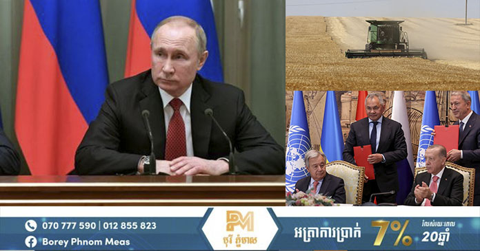រដ្ឋធានីមូស្គូ៖ អង្គការសហប្រជាជាតិ និង តួកគី បានសម្របសម្រួល ជំរុញឲ្យមានកិច្ចព្រមព្រៀង នាំគ្រាប់ធញ្ញជាតិ ចេញពីប្រទេសអ៊ុយក្រែន តាមច្រកសមុទ្រខ្មៅ ប៉ុន្ដែឥឡូវ វិមានក្រឹមឡាំង បានប្រកាសអំពីការលែងចូលរួមជាមួយនឹងកិច្ចព្រមព្រៀងនេះ ហើយសកម្មភាពបែបនេះ នឹងធ្វើឲ្យមនុស្សរាប់លាននាក់ រងផលប៉ះពាល់យ៉ាងធ្ងន់ធ្ងរបំផុត ជាពិសេស បណ្ដាប្រទេសនៅតំបន់អាហ្វ្រិក។