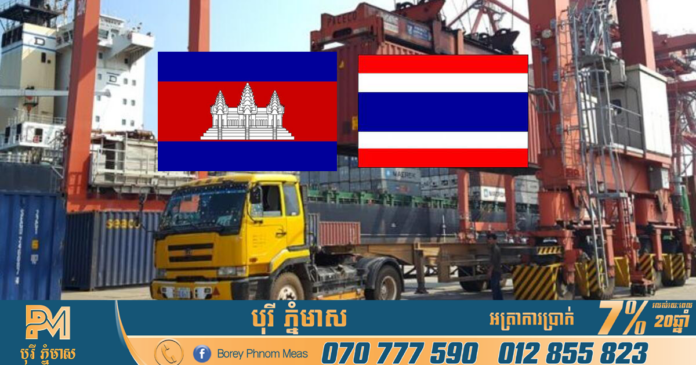 បើតាមអគ្គនាយកដ្ឋានគយ និងរដ្ឋាករកម្ពុជា ៦ខែ ឆ្នាំ២០២៣ កម្ពុជា បាននាំចេញទៅថៃសម្រេចបានទឹកប្រាក់ប្រមាណជាង ៥២៧លានដុល្លារ កើនឡើង ៦.៥ភាគរយ បើធៀបនឹងរយៈពេលដូចគ្នាកាលពីឆ្នាំ ២០២២ មានចំនួនជាង ៤៩៥លានដុល្លារ។ ដោយឡែកម្ពុជា នាំចូលពីថៃមកវិញ មានចំនួនជាង ១.៤ពាន់លានដុល្លារ។