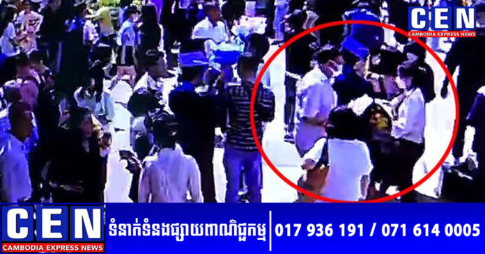 តាមរូបភាពកាមេរ៉ាសុវត្ថិភាព បានបង្ហាញឲ្យឃើញមានមនុស្សយ៉ាងតិច ៣ នាក់ (ស្រី២នាក់ ប្រុស១នាក់) មកជិតជនរងគ្រោះ។ ក្នុងនោះ បុរសពាក់អាវពណ៌ស កាន់ភួងផ្កាពណ៌ស្វាយ មានស្ត្រីពីរនាក់មកជាមួយ។ ពួកគេបានចូលទៅជិតសិស្ស និងសមាជិកគ្រួសារ ខណៈកំពុងថតរូប បន្ទាប់មក “ធ្វើសកម្មភាព” ហើយចាកចេញយ៉ាងលឿន៕ រក្សាសិទ្ធិដោយ៖ លឹម ហុង