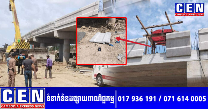 នេះជាហេតុការណ៍ដ៏រន្ធត់ ដែលគួរឲ្យមានការប្រុងប្រយ័ត្ន សម្រាប់បងប្អូនជាកម្មករសំណង់ទាំងឡាយ ព្រោះថាកម្មករជនជាតិភូមាម្នាក់ ខណៈកំពុងធ្វើការសុខៗ ស្រាប់តែផ្ទាំងថ្មមួយផ្នែក នៃជញ្ជាំងស្ពានអាកាសនៅថៃ ដែលមានទម្ងន់ ៥០០ គីឡូក្រាម បានធ្លាក់ចំពីលើ បណ្តាលឲ្យស្លាប់ភ្លាមៗនៅនឹងកន្លែងតែម្តង។
