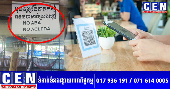 ជាក់ស្តែង តាមរយៈក្រដាសព្រីនមួយសន្លឹក ដែលត្រូវបានបិទប្រកាសនៅក្នុងតូប បានសរសេរឲ្យដឹងបែបនេះថា៖ «សូមអធ្យាស្រ័យ ហាងយើងខ្ញុំទទួលជាសាច់ប្រាក់សុទ្ធ NO ABA NO ACLEDA»។