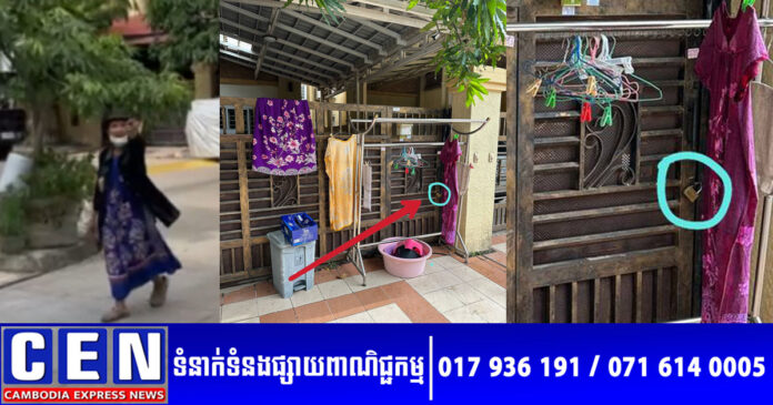 ជាក់ស្តែង តាមរយៈរូបភាពនៃវីដេអូមួយ បានបង្ហាញឲ្យឃើញស្នួលហាលខោអាវមួយ ដែលទើបបោកគក់រួចហើយថ្មីៗ ត្រូវបានដាក់ហាលពីមុខច្រកទ្វារផ្ទះ និងសំពត់មួយក៏ត្រូវបានហាលពីលើរបងទ្វារ និងថែមទាំងយកសោ មកចាក់ខាងក្រៅទៀតផង ខណៈបុគ្គលិកក្រុមហ៊ុន កំពុងស្ថិតនៅខាងក្នុង។ រីឯវីដេអូផ្សេងទៀត ក៏បានបង្ហាញស្រ្តីរូបនេះ បានបាញ់ទឹកពីផ្ទះរបស់ខ្លួន ចូលក្នុងផ្ទះគេទៀតផង។