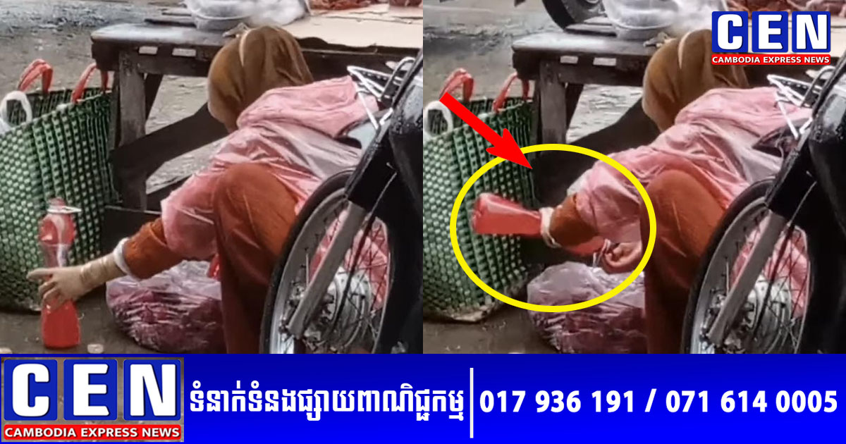 មហាជនអ្នកអ្នកប្រើប្រាស់បណ្តាញសង្គម ពិតជាមានការភ្ញាក់ផ្អើលយ៉ាងខ្លាំង ក្រោយពីបានឃើញវីដេអូដ៏ចាប់អារម្មណ៍មួយ បង្ហាញស្រ្តីអ្នកលក់សាច់គោម្នាក់ ដែលជាបងប្អូនខ្មែរឥស្លាម បានធ្វើសកម្មភាពយកទឹកក្រហមអ្វីម្យ៉ាង ពីក្នុងដបទៅចាក់លាបលើសាច់គោ មុនពេលដាក់លក់ឲ្យអតិថិជន។