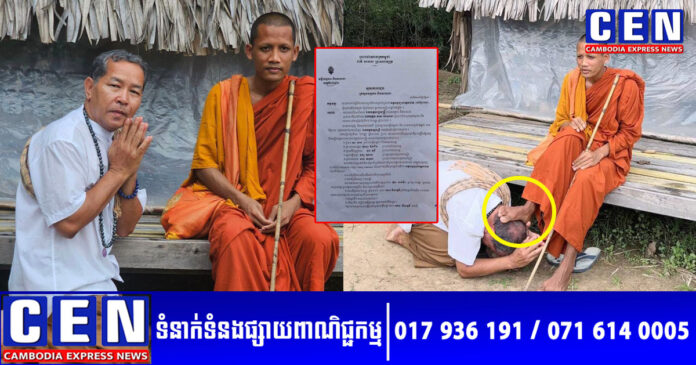 ថ្មីៗនេះ រូបភាពមួយសន្លឹក ដែលបង្ហាញព្រះសង្ឃមួយអង្គ យក «ជើងដាក់លើក្បាល» បុរសចំណាស់ម្នាក់ ដែលគេស្គាល់ថាជាចៅអធិការគង្សនៅ «វត្តចន្ទប្បជោត្តនារាម» ហៅ «វត្តតាគុត» ស្ថិតនៅក្នុងឃុំក្រាំងលាវ ស្រុករលាប្អៀរ ខេត្តកំពង់ឆ្នាំង បានធ្វើឲ្យមហាជនអ្នកប្រើប្រាស់បណ្ដាញសង្គមជាច្រើន មានការភ្ញាក់ផ្អើល និងហួសចិត្តយ៉ាងខ្លាំង ដោយបានបញ្ចេញមតិរិះគន់ឡើងព្រោងព្រាតតែម្តង ព្រោះទង្វើបែបនេះ មើលទៅហាក់ដូចជាមិនស័ក្ដិសមឡើយ។ អ្វីដែលកាន់តែហួសចិត្តទៀតនោះ គឺទន្ទឹមនឹងរូបភាពនេះ ក៏ឃើញមានអ្នកលេងបណ្តាញសង្គមមួយចំនួន បានចែករំលែកល្បីតៗគ្នាថា ព្រះសង្ឃអង្គនេះមានព្រះជន្ម ១២២ ព្រះវស្សា ទៀតផង តែជាក់ស្តែង មិនមែនជាការពិតឡើយ។