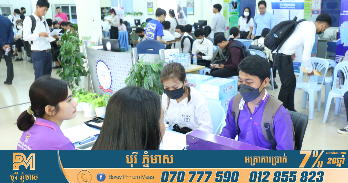 ភ្នំពេញ៖ ក្រុមហ៊ុន និងរោងចក្រធំៗចំនួន ៦ នឹងផ្តល់ឱកាសការងារថ្មីបន្ថែមទៀតសរុបចំនួន ១៧០៦ កន្លែង នៅថ្ងៃទី ០៥ ខែតុលា ឆ្នាំ២០២៣ សម្រាប់យុវជនសិស្ស/និស្សិត និងអ្នកកំពុងស្វែងរកការងារធ្វើក្នុងវេទិកាការងារដែលរៀបចំដោយ ទីភ្នាក់ងារជាតិមុខរបរ និងការងារ (NEA) នៃក្រសួងការងារ និងបណ្តុះបណ្តាលវិជ្ជាជីវៈ សហការជាមួយ ស.ស.យ.ក. វិស័យការងារ និងបណ្តុះបណ្តាលវិជ្ជាជីវៈ។