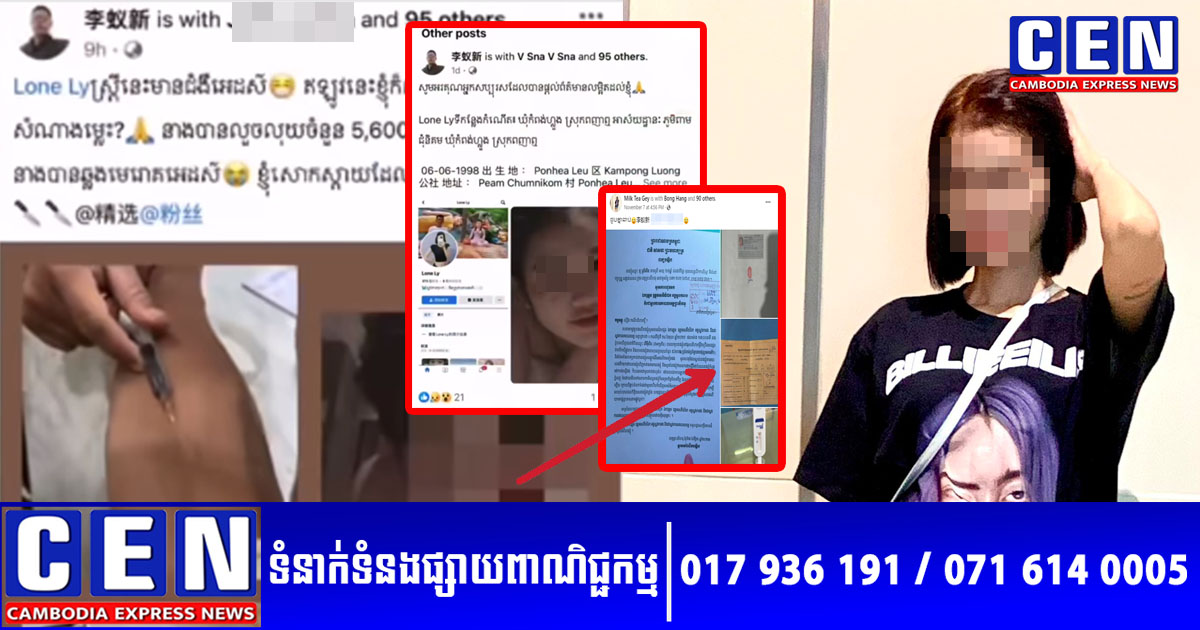 ថ្មីៗនេះ មហាជននៅលើបណ្តាញសង្គម ពិតជាមានការភ្ញាក់ផ្អើល និងគួរឲ្យហួសចិត្តយ៉ាងខ្លាំងតែម្តង ក្រោយពីបានឃើញបុរសជនជាតិចិនម្នាក់ បានសម្រេចចិត្តបង្ហោះនៅលើបណ្តាញសង្គម ស្វែងរកមុខស្រ្តីខ្មែរម្នាក់ដែលមានគណនីហ្វេសប៊ុកឈ្មោះ Lone Ly ដែលខ្លួនបានណាត់ឡើងសណ្ឋាគារ ប៉ុន្តែ មិននឹកស្មានថា ពុំត្រឹមតែបន្សល់ទុកជំងឺអេដស៍ដល់ខ្លួនប៉ុណ្ណោះទេ គឺស្រ្តីខ្មែររូបនោះថែមទាំងបានលួចលុយរបស់ខ្លួនអស់ចំនួន 5,600 ដុល្លារអាមេរិក ទៀតផង។